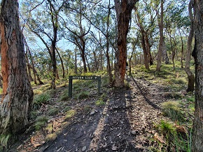 Rdを左折、すぐに未舗装の道路になります。ここから数分で右手に Conglomerate Gully Walkのサインが出てきます。駐車スペースが限られているので道路空きスペースに駐車することになります。 メルボルン市内から約65km、所要時間約1時間10分 |