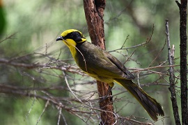 Helmeted Honeyeater 英名:Helmeted Honeyeater, Yellow-tufted Honeyeater 学名:Lichenostomus melanops cassidix 和名:キムネミツスイ 目: 目 科: ミツスイ科科 体長:全長:17-23cm 体重:30-40g 目の付近の黒マスクの様な模様が特徴。現在は、ビクトリア州東部(Yellingbo付近)に限られた場所のみ生息、絶滅危惧種でもある。 その他の参考文献:Wiki 【写真撮影】 2013年7月11日、ビクトリア州、ヒールスビル鳥獣保護区 |