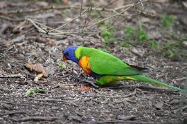 Rainbow Lorikeet 英名:Rainbow Lorikeet 学名:Trichoglossus moluccanus 和名:ゴシキセイガイインコ 目: オウム目 科: オウム科 体長:全長:25-32cm 名前の通りにカラフルな色あい、東部の青色が特徴。オーストラリア北部、東部の海岸線沿に生息。 その他の参考文献:Wiki 【写真撮影】 2016年11月13日、ビクトリア州、ヒールスビル鳥獣保護区 |