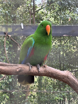 ECLECTUS PARROT 英名(English name): Eclectus Parrot 学名(Scientific name): Eclectus roratus 和名(Japanese name): オオハナインコ(大鼻鸚哥) 目(Order): オウム目(Psittaciformes) 科(Family): オウム科(Psittaculidae または Psittacidae 系統で扱われることも) 体長: 約 35~42 cm 体重: 約 380~600 g(雌のほうが大型で重い傾向) 生息地:オーストラリアのケープヨーク半島北部の熱帯雨林 特徴と生態 世界でも珍しい「雌雄で色が全く違う」インコ オス(雄): 鮮やかなエメラルドグリーン メス(雌): 真紅〜ワインレッドに青紫の羽 【写真撮影】 2025年11月11日、ビクトリア州、ヒールスビル鳥獣保護区 |